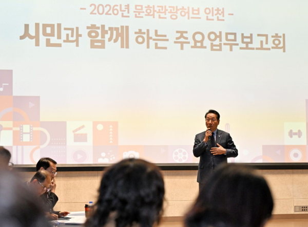 인천시는 26일 미추홀구에 위치한 틈 문화창작지대에서 ‘문화적 상상으로 도시를 실현하는 문화강시(文化强市) 인천’을 주제로 2026년 주요업무 보고회를 개최했다.