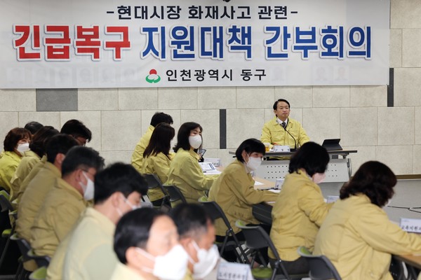 인천 동구가 송림동 현대시장 화재 사고와 관련, 신속한 피해 회복을 위한 분야별 지원 대책을 추진하고 있다.