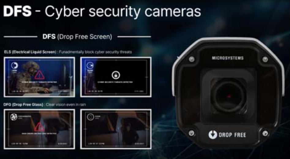 마이크로시스템(대표 정상국) 역시 ‘DFS(Drop Free Screen)-aided Cyber Security Camera’로 사이버보안 & 개인정보 부문 혁신상에 선정돼 5년 연속 혁신상 수상 이라는 의미있는 성과를 이뤘다. 이들 제품은 카메라 렌즈를 필요시에만 개방해 사용자의 개인정보와 기밀을 보호하며 카메라 렌즈에 발생하는 빗물, 습기, 먼지 등에 따라 발생하는 오염을 신속히 제거하는 기능으로 실내외 다양한 환경에서 오류 없는 영상 관제를 가능케 한다.