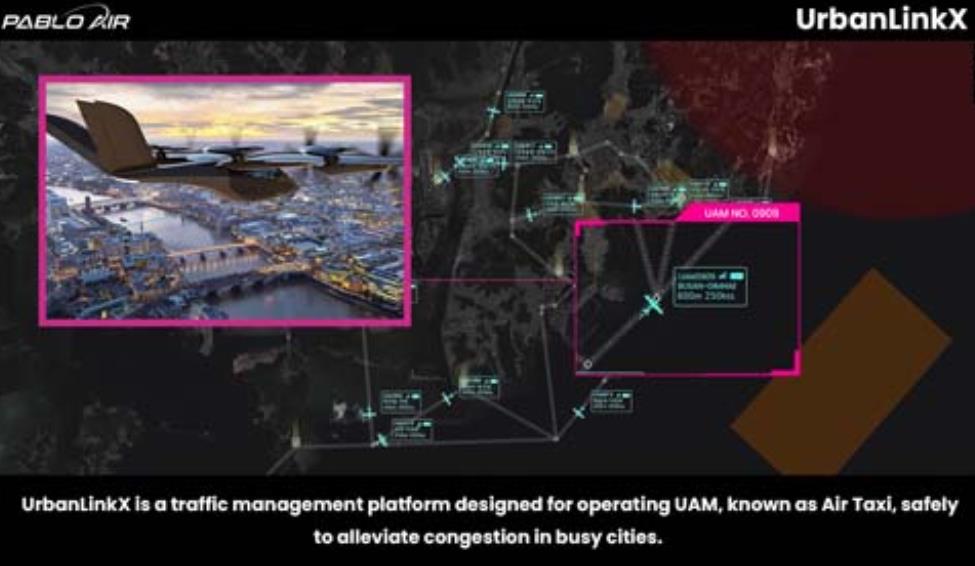 파블로항공(대표 김영준)는 AI 기반 교통관리 플렛폼인 UrbanLinkX를 통해 스마트시티 부문 혁신상에 선정됐다. 특히 Air Taxi라고도 알려진 UAM(Urban Air Mobility)는 도심 밀집지역 교통난을 해결하기 위한 차세대 교통수단으로 이의 운용을 위해서는 교통관리 플렛폼이 필요하다.