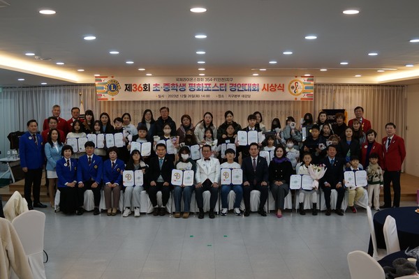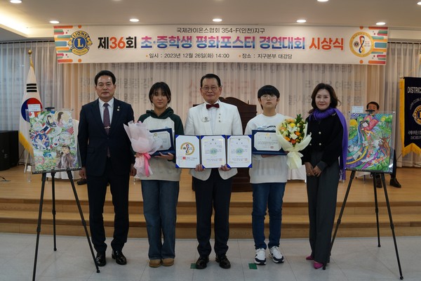국제라이온스협회 354-F(인천)지구 (총재 유영태)는 26일 오후 2시 라이온스회관 대강당에서 제36회 초·중학생 평화포스터 콘테스트에서 입상한 학생들에 대한 시상식 및 수상작 전시회를 개최하고 축하와 격려의 시간을 가졌다.
