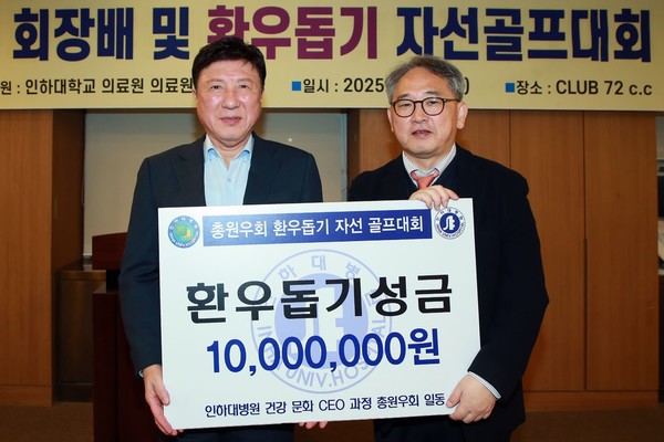 인하대병원은 건강문화CEO과정 총원우회가 자선 골프대회를 열어 마련한 환우 치료비 돕기 성금 1천만 원을 전달해 왔다.