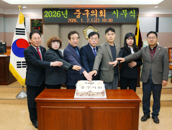 이날 시무식에는 이종호 의장을 비롯한 중구의회 의원과 의회사무과 직원들이 참석했으며, 국민의례, 이종호 의장의 신년사 낭독, 의원과 직원 간 신년인사의 순서로 진행됐다.