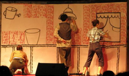 무대위의 배우들도 공간에도 무용과 아크로바틱으로 그림을 그리고 악기로 색을 채운다.