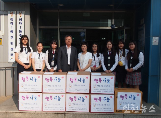 인천초은고 ‘청라1동 주민센터 행복 나눔 상자’ 전달식